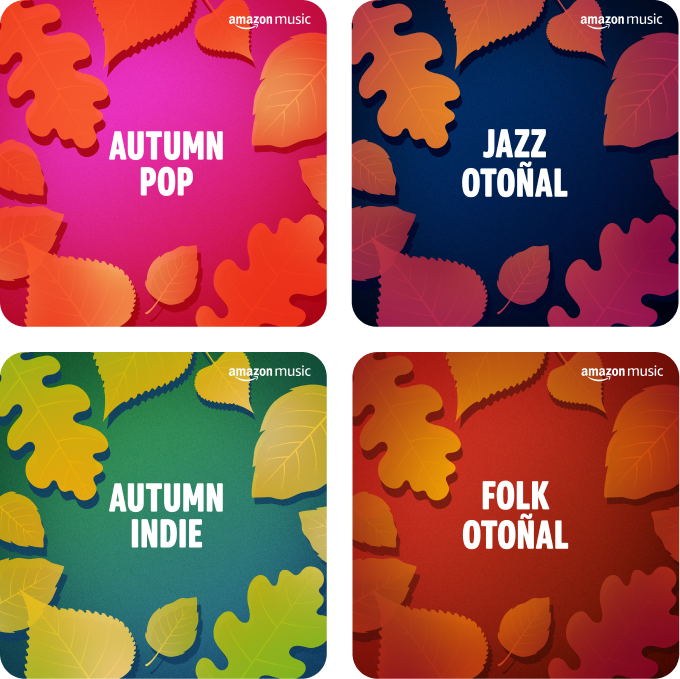 I was tasked with updating the look and feel for Holiday, Halloween, and Autumn playlist and station artwork, including Amazon Music's largest artist face out playlist templates.